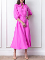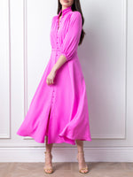 Our Aurelia dress, with full skirt and soft pleat sleeves, is the ultimate in elegant chic!