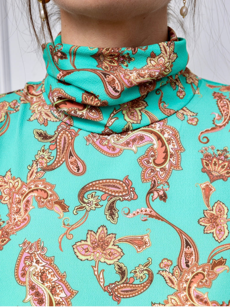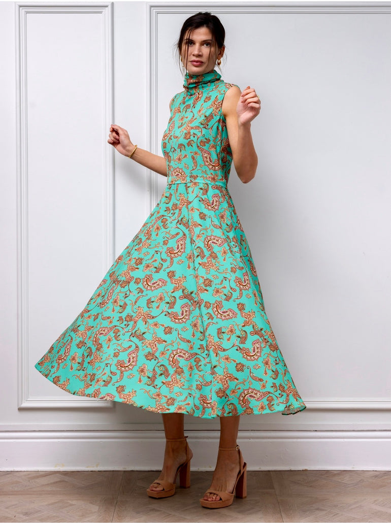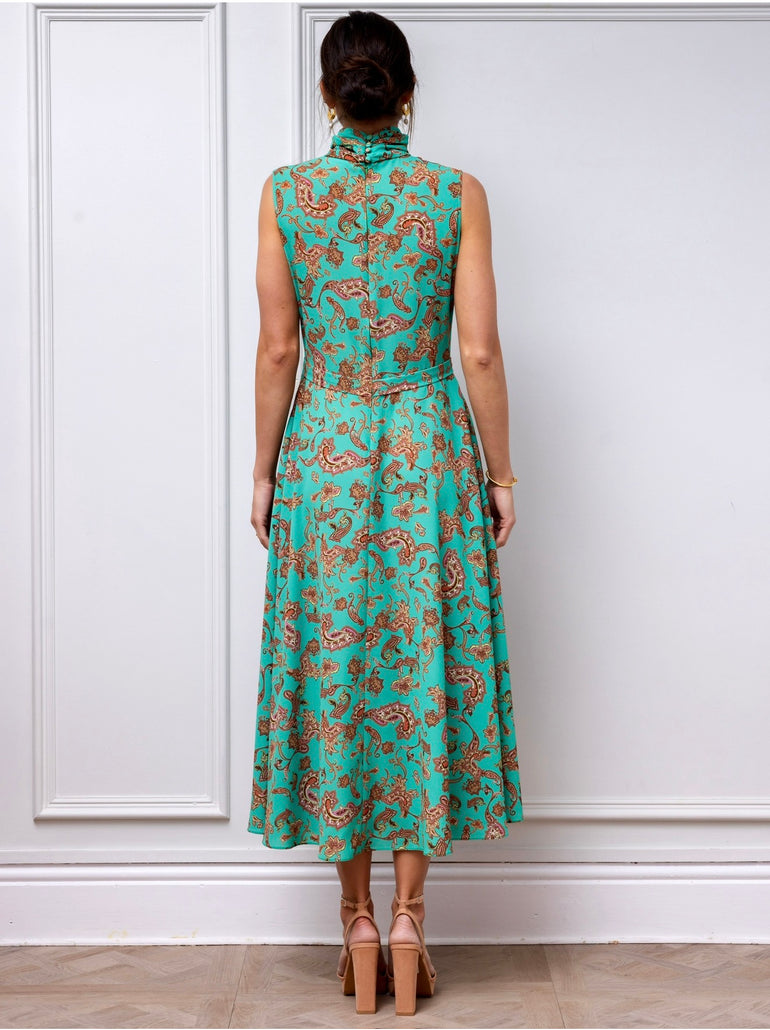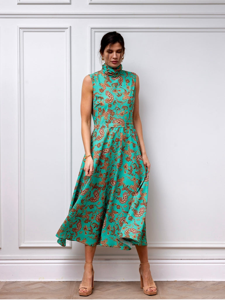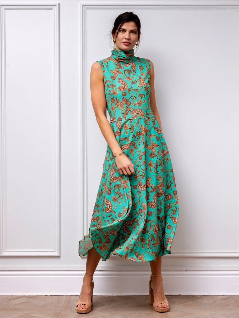 The Carys dress with high slouchy neck and elegant sleeveless cut.