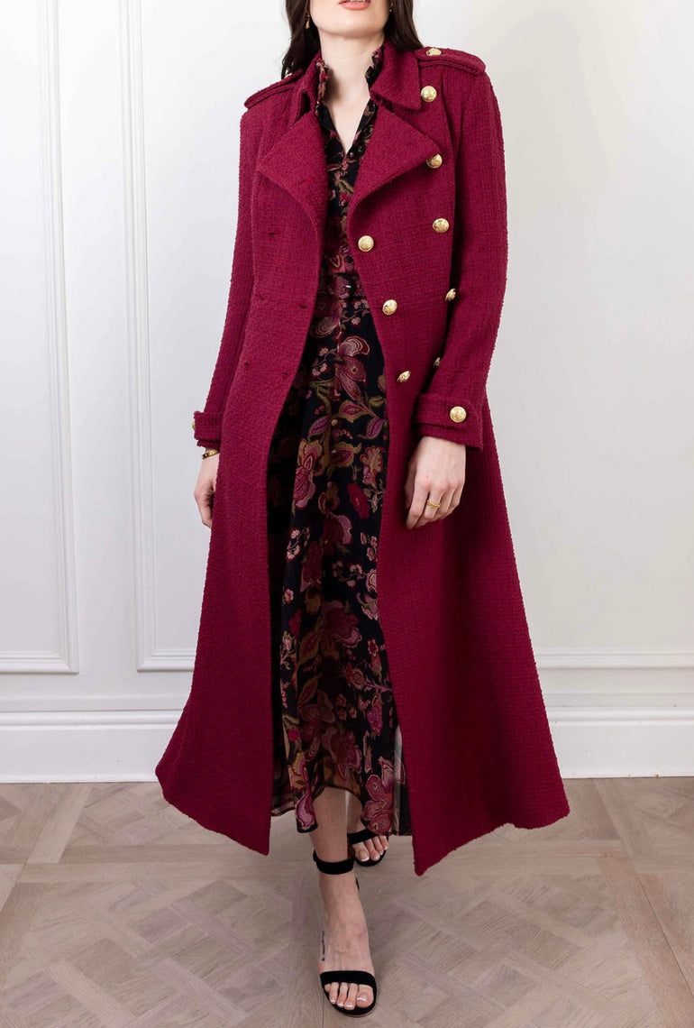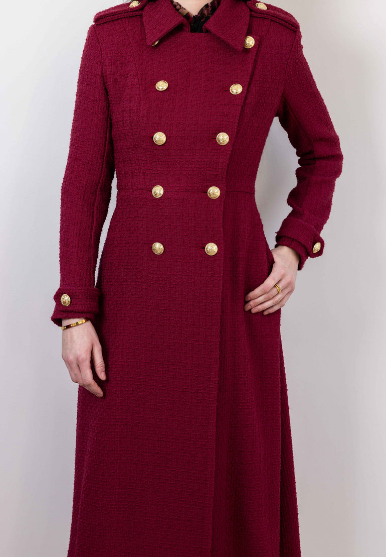 Our stunning Clemence coat has been crafted from beautiful textured Italian tweed. The coat is designed with the utmost attention to detail, that accentuates your waistline and creates a flattering silhouette.