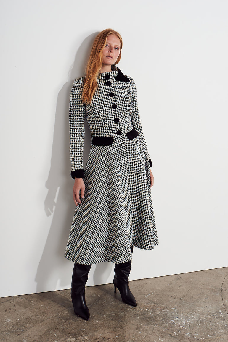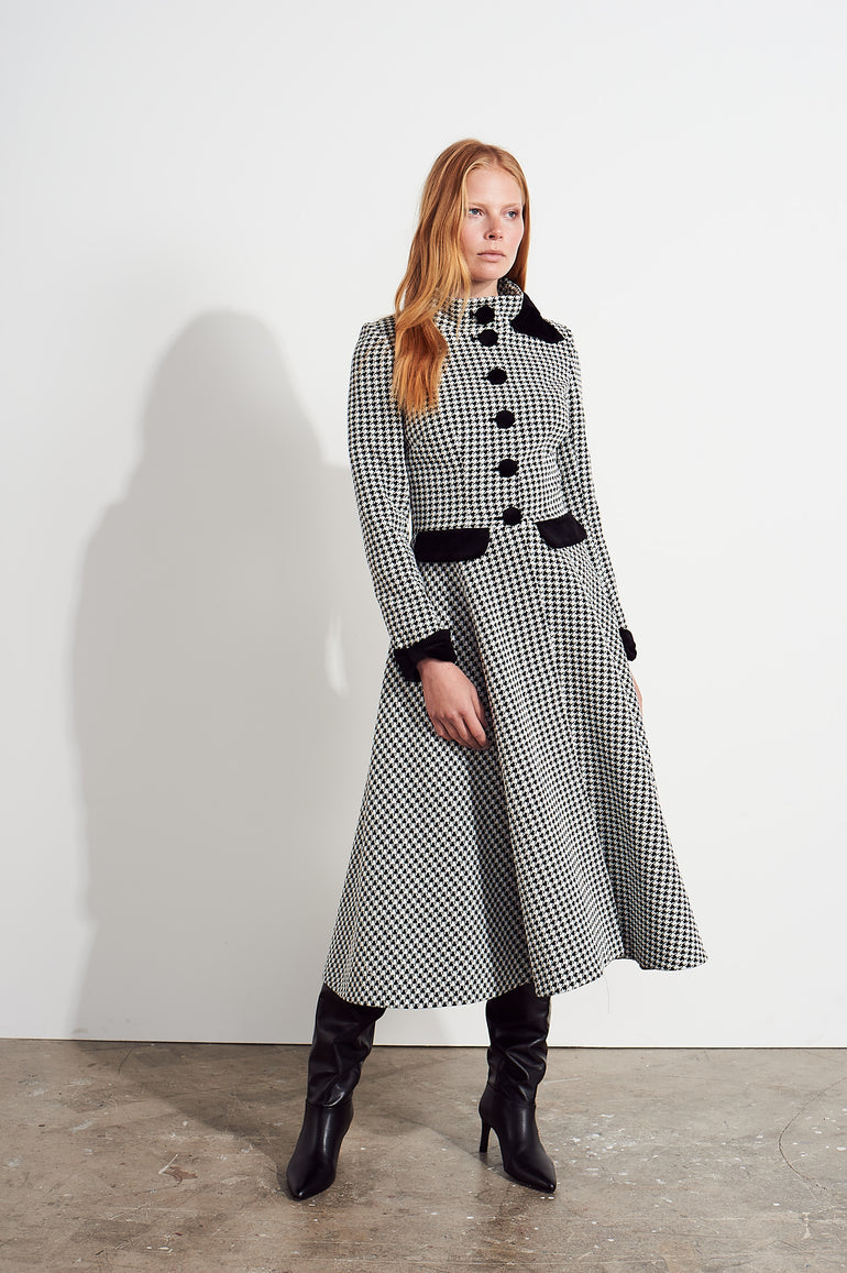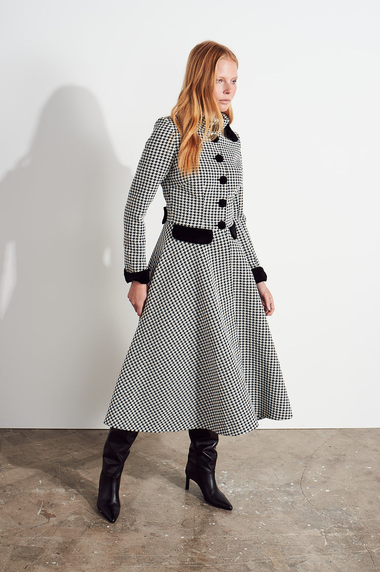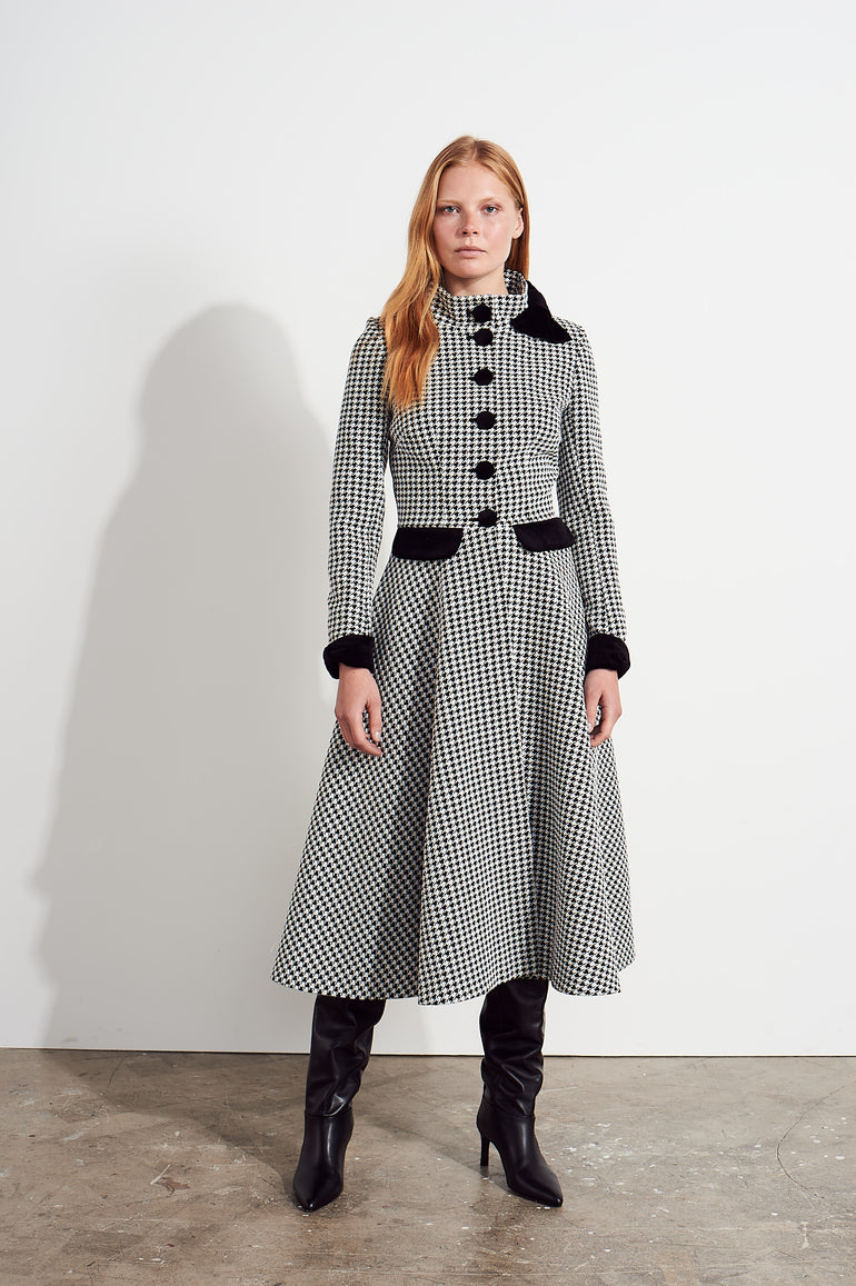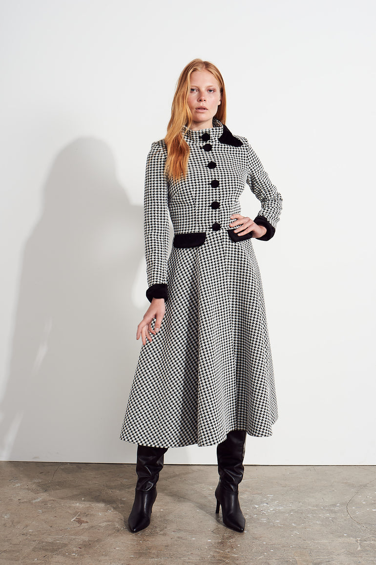 The Kirsten coat dress, with full skirt and fitted full length sleeves, is the ultimate in elegant chic!