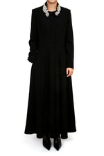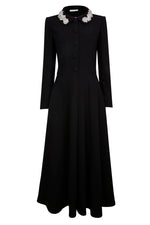 The Grace coat dress, with full skirt and fitted full length sleeves, is the ultimate in elegant chic!